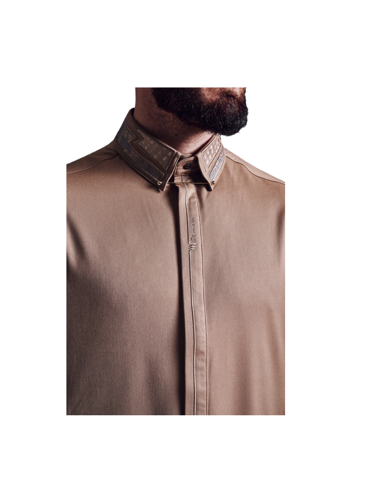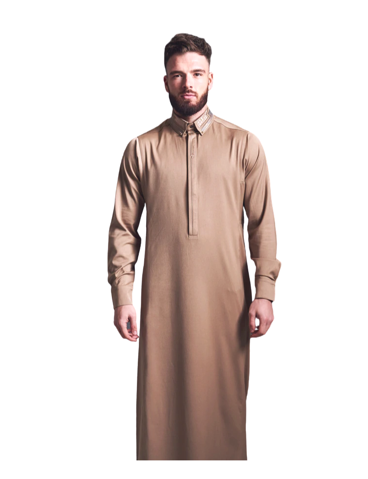 LAWUNG Mens thobe with Embroidered collar - desert Gold FROM UK